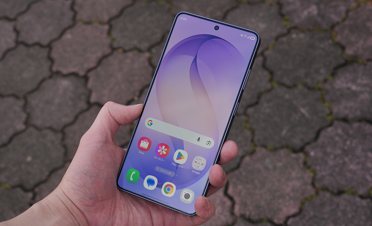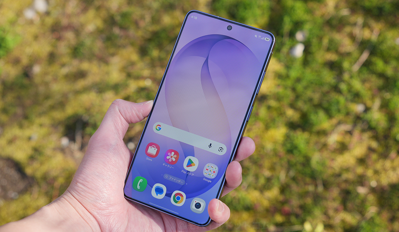 Galaxy S26 Ultraは、フラットディスプレイ採用。上部に、パンチホール型のインカメラ搭載しています。画面のベゼルは、4辺均一仕様。上下左右とも極狭で、使っていて不満は一切ありませんでした。