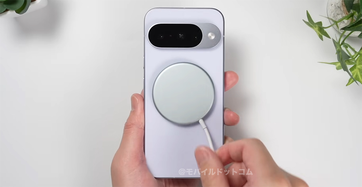 現時点で、国内向けAndroidスマートフォンで対応している機種はPixel 10シリーズのみ。純正のPixelsnap 充電器を使えば、本体に直接貼り付けてワイヤレス充電を利用できます。