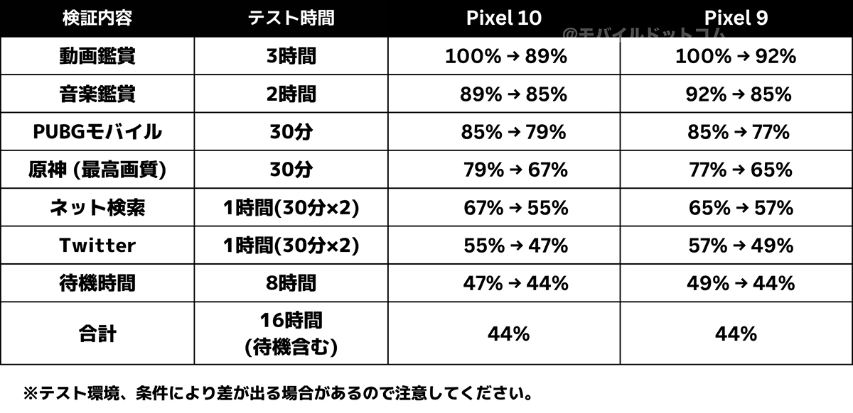 Google Pixel 10のバッテリー持ちを確認していきます。