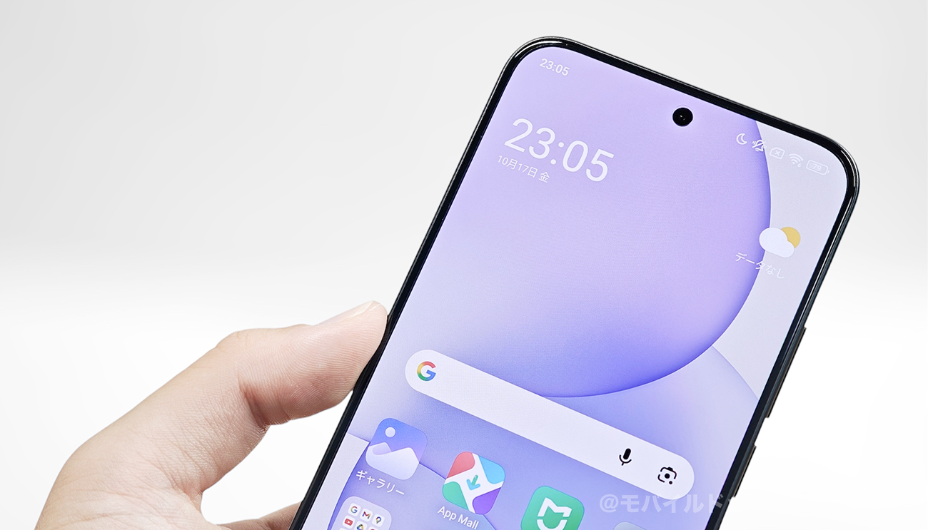 Xiaomi 15Tは、フラットディスプレイ(*Corning Gorilla Glass 7i)を採用し、中央上部にパンチホール型インカメラを搭載しています。